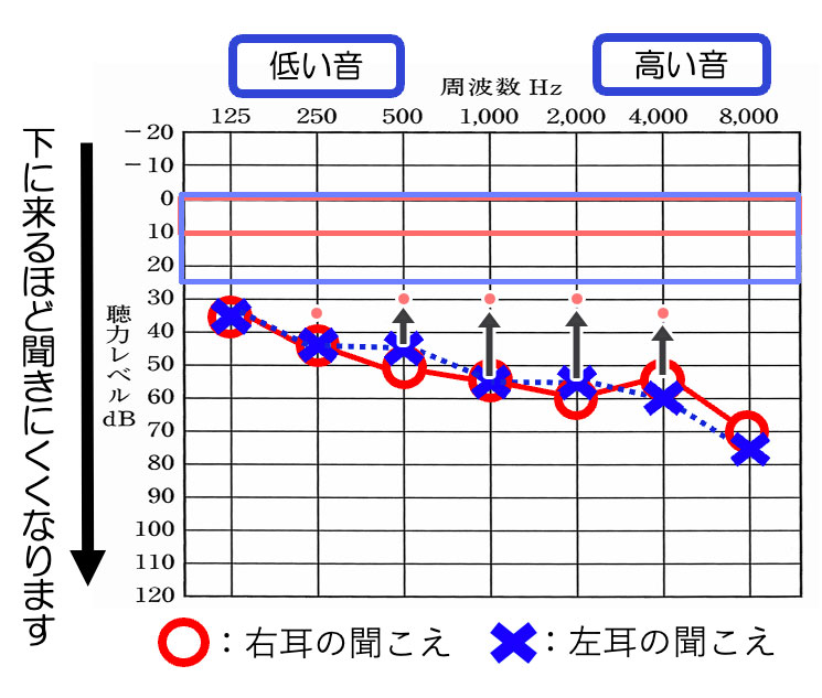 例えば、このような聴力があったとしますと、
