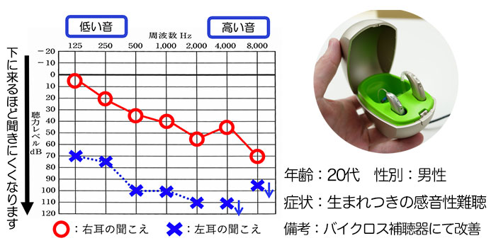 右、生まれつきの感音性難聴、左、メニエール病の方