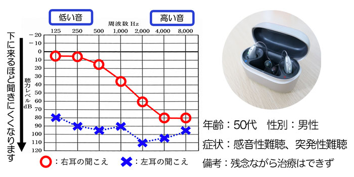左、突発性難聴、右、原因不明の難聴の方